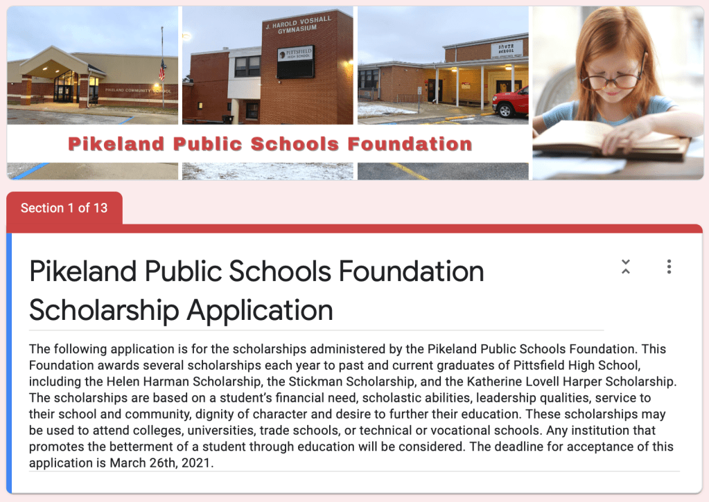 Our 2021 Scholarship Application is accessible online. Apply now if you are a current senior or graduate of Pittsfield High School planning on pursuing higher education next year.